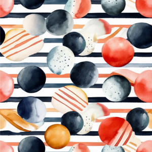 watercolor pattern, hand-painted dots, polka dot stripes, abstract watercolor art, playful circles design, colorful bubbles, navy and coral stripes, artistic background, watercolor print, multicolor design