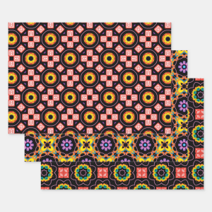 colorful wrapping paper, mandala gift wrap, kaleidoscope patterns, vibrant gift wrap set, floral wrapping paper, geometric wrapping paper, modern black gift wrap, bold pattern gift wrap, unique wrapping paper designs, bright festive wrapping paper.