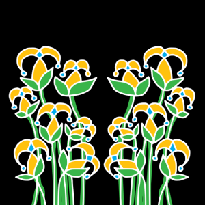 –> All products with this design. Available in more colors. Bright yellow and green stylized flowers with blue accents stand out against a solid black background, creating a symmetrical design. The flowers have a whimsical and playful appearance, with simple shapes and bold outlines. Key: flowers, yellow, green, symmetrical, whimsical, playful, bold, black background, stylized, … Read more